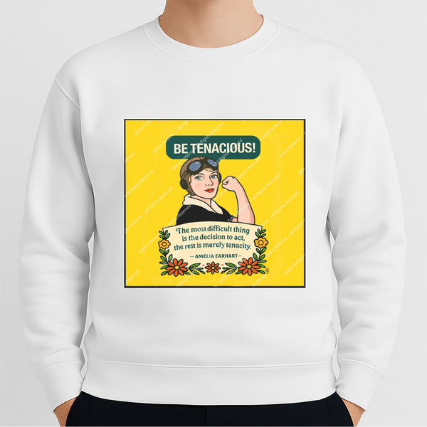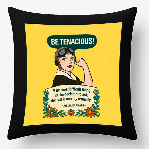 This bold 9” x 9” 100% cotton fabric art panel celebrates aviation pioneer Amelia Earhart with her empowering quote: “The most difficult thing is the decision to act, the rest is merely tenacity.” The message bubble reads “Be Tenacious!” — capturing her fearless drive and trailblazing determination. (Part of the Women’s Quotes Panel series.)
