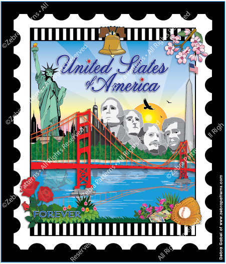 Stamps are one of Zebra Patterns' signature products. Hundreds of destinations and themes - growing monthly - illustrating life's journeys - Where Ya' Been - for you, family and friends! 100% cotton. 6" x 7" Mini Stamps and 18" x 21" Stamp Panels. View/buy from here, or from the grouped sub-categories menu at left.