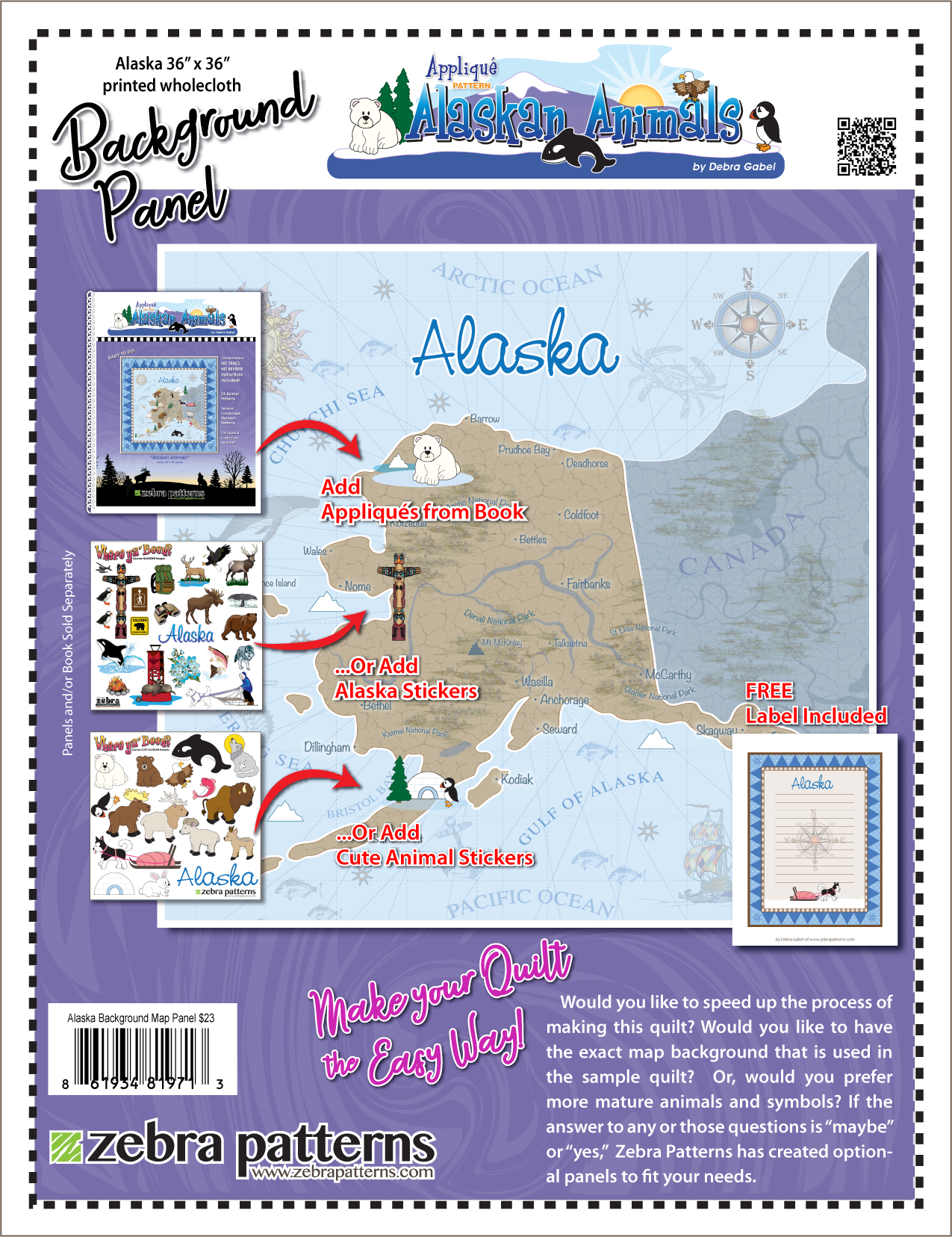 Excellent companion to Appliqué Alaska Animals book projects, or as the background for your own Where Ya' Been projects!