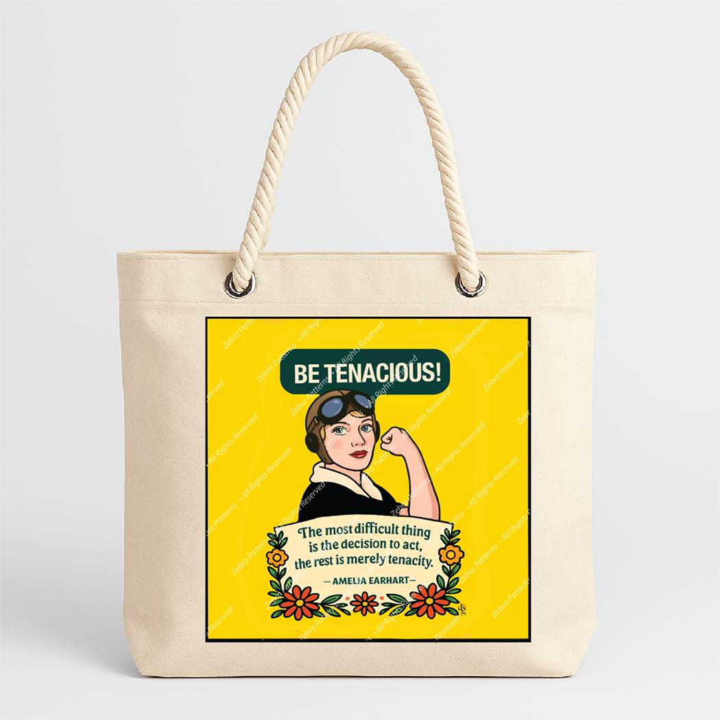 This bold 9” x 9” 100% cotton fabric art panel celebrates aviation pioneer Amelia Earhart with her empowering quote: “The most difficult thing is the decision to act, the rest is merely tenacity.” The message bubble reads “Be Tenacious!” — capturing her fearless drive and trailblazing determination. (Part of the Women’s Quotes Panel series.)
