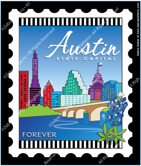 Stamps are one of Zebra Patterns' signature products. Hundreds of destinations and themes - growing monthly - illustrating life's journeys - Where Ya' Been - for you, family and friends! 100% cotton. 6" x 7" Mini Stamps and 18" x 21" Stamp Panels. View/buy from here, or from the grouped sub-categories menu at left.