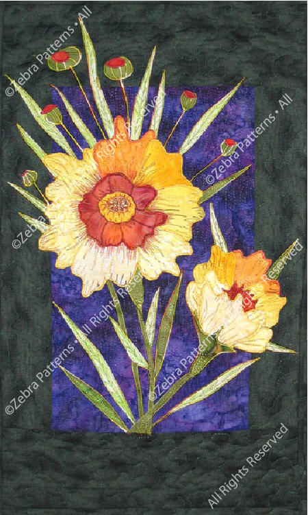 This series is designed to create beautiful hangings for yourself or as gifts. Finished size individually as 12" x 20" wall hangings, or you can create an entire quilt with your choice of several flowers. Each pattern includes complete and clear instructions with diagrams and a full sized positioning sheet for assembly. The pattern pieces are computer drawn and professionally printed for ease of use. No tracing or reversing. Each pattern package features a full color image of the completed quilt.