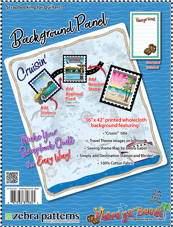 - Simply add destination Mini Stamps, personal photos, fabric stickers, border, backing, binding, quilt and embellish!