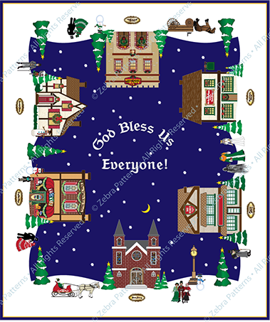 This is the PROJECT ONLY for the 42" x 50" Christmas Town Square lap quilt or hanging. Includes patterns for snow and sky and general directions for layout and positioning of the Dickens Village appliqué patterns or printed panels purchased separately.