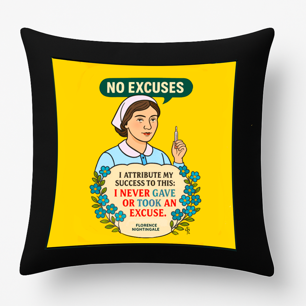 This bold 9” x 9” 100% cotton fabric art panel honors nursing pioneer Florence Nightingale with her empowering quote: “I never gave or took an excuse.” The message bubble reads “No Excuses,” capturing her fearless dedication and trailblazing leadership. (Part of the Women’s Quotes Panel series.)