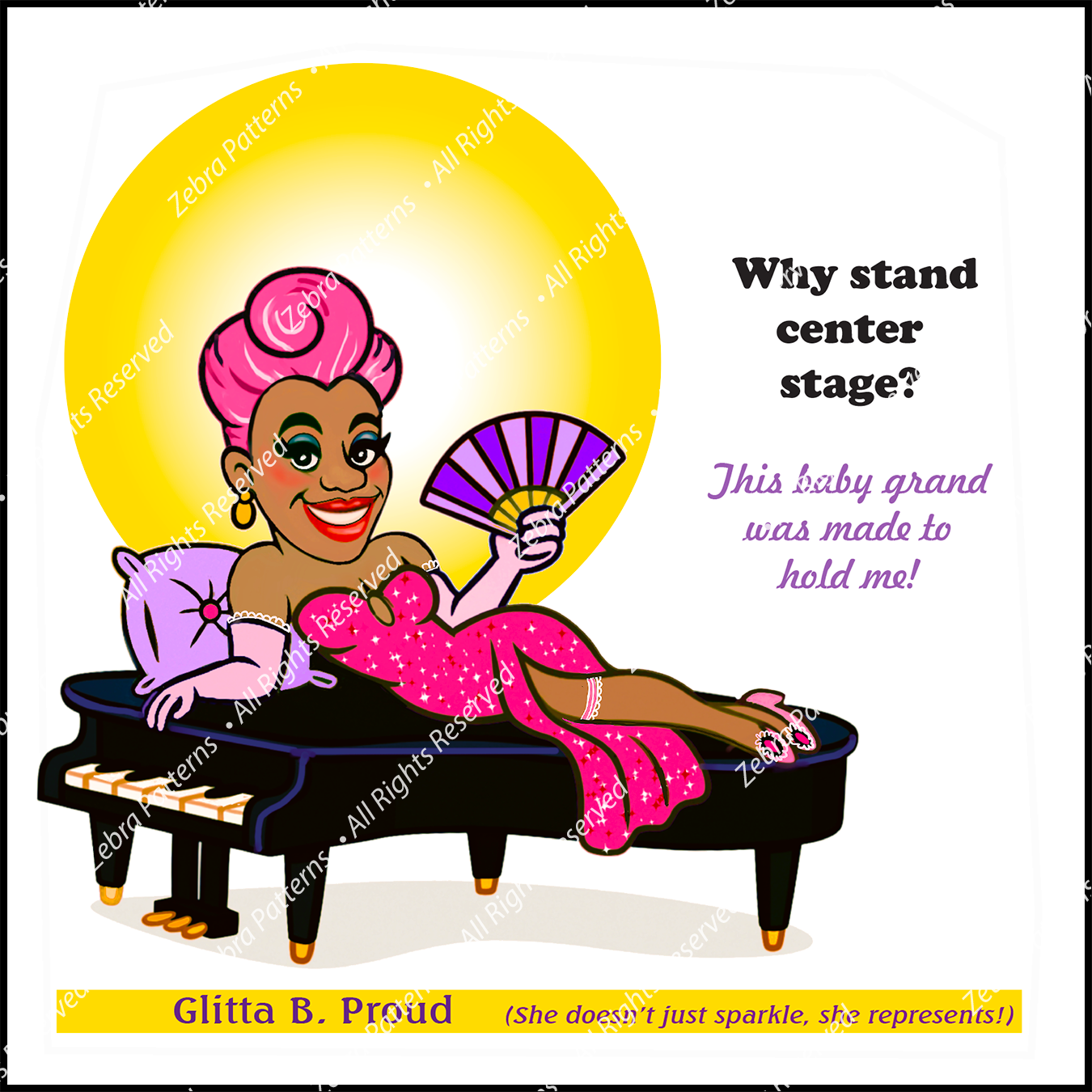 Sparkling brighter than a sequined gown under a spotlight, Glitta B. Proud rests on a baby grand like it was built just for her — and honestly, it was. Designed by Debra Gabel and printed on 100% cotton, this 9x9-inch panel is perfect for anyone who believes in taking up space with confidence and glitter. Sassy, radiant, and unapologetically proud — Glitta is not background. She is the main event.