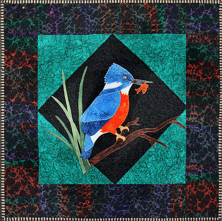 - Sew Corners to Background then assemble bird atop and iron in place.