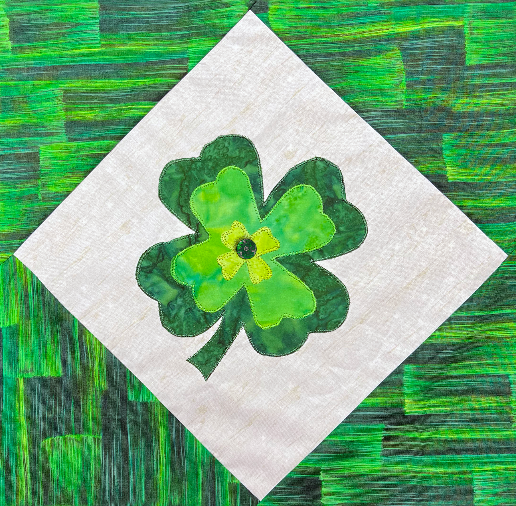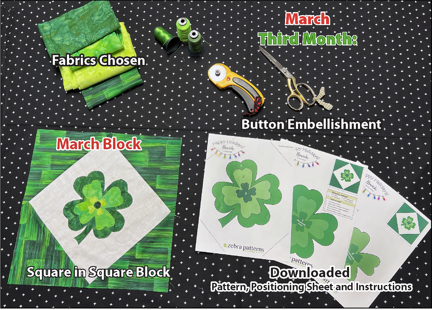 See image for the block put together with cotton fabrics. I chose a light background with matching corners to my design. My background will be the same for all twelve blocks. Your download will include a full size pattern, a positioning sheet and directions to create the background square in square block to place the featured image.