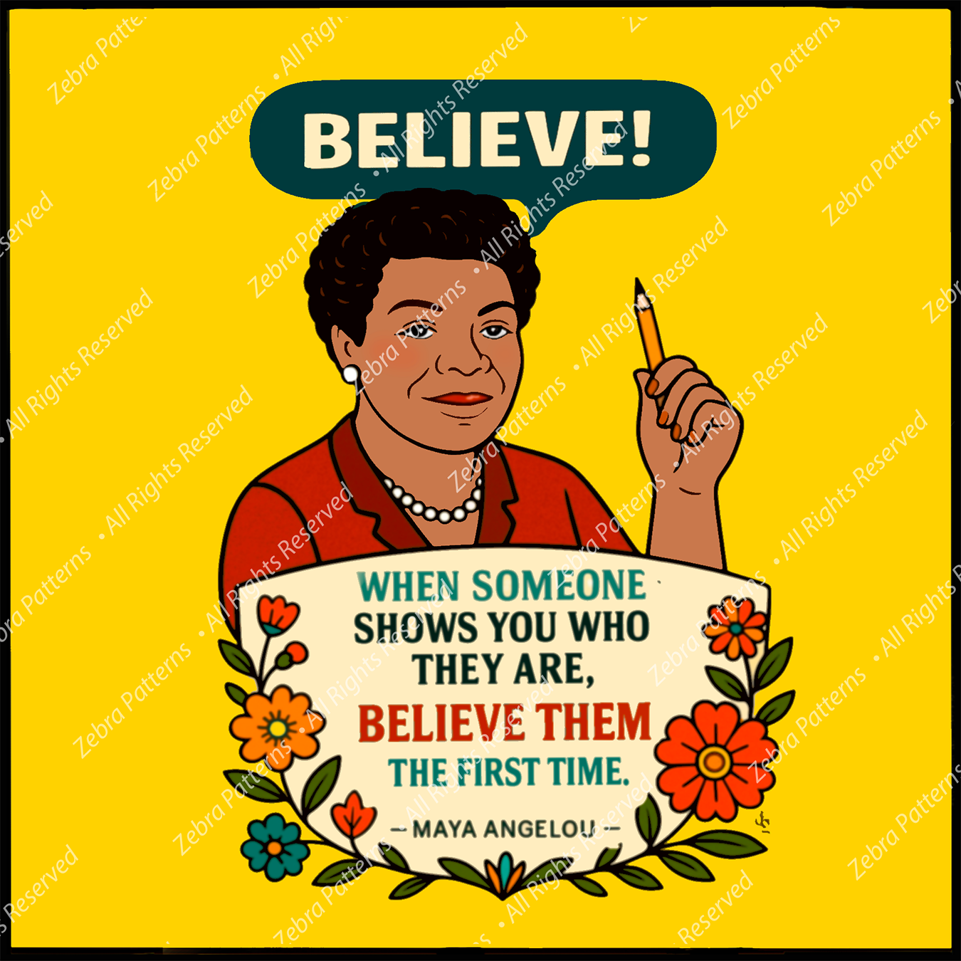 This bold 9” x 9” 100% cotton fabric art panel honors poet and activist Maya Angelou with her uplifting message: “Try to be a rainbow in someone’s cloud.” The speech bubble reads “Be a Rainbow!” — a bright reminder to bring light, kindness, and color to the world. (Part of the Women’s Quotes Panel series.)