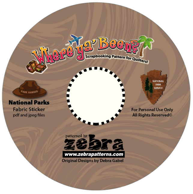 Themed patterns, printed fabric stickers, banners, full project background panels and printable sticker CDs for your Where Ya' Been projects! Think Scrapbooking for Quilters™ and decorate your Where Ya' Been projects with fun and fanciful fabric stickers and banners!