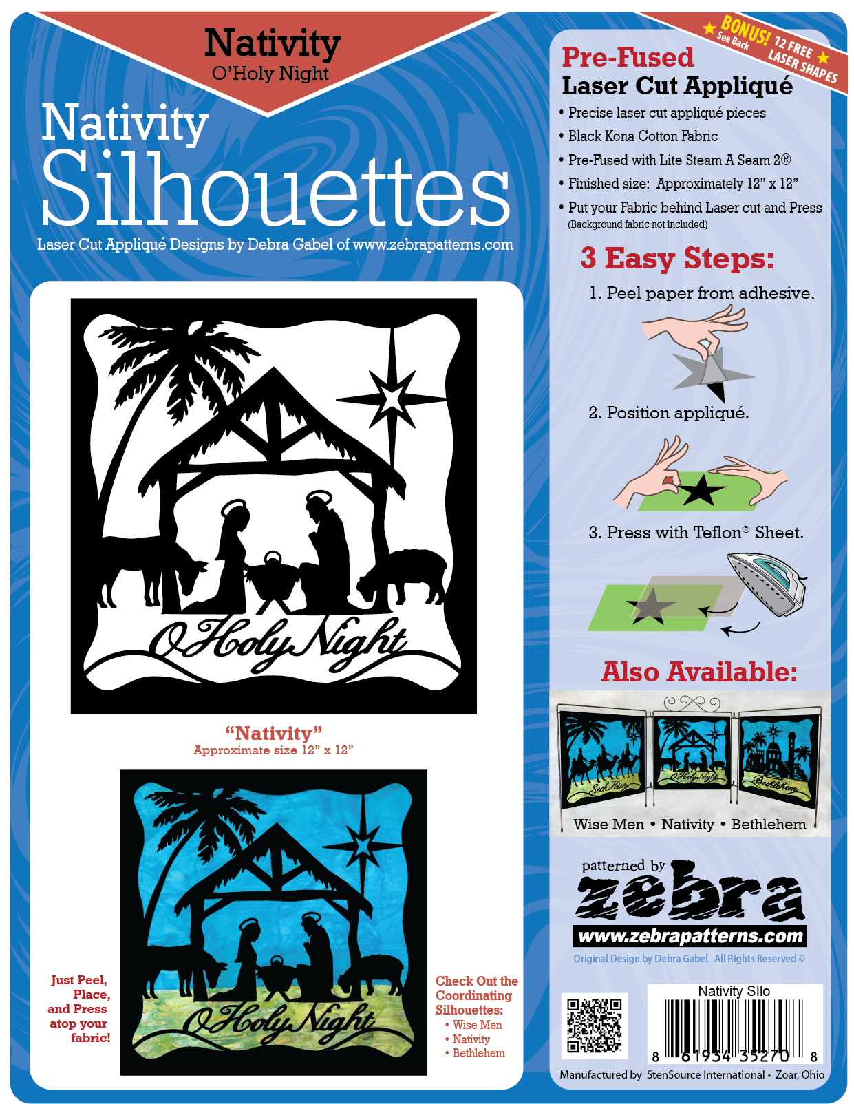 - Precise pre-fused laser cut appliqué pieces