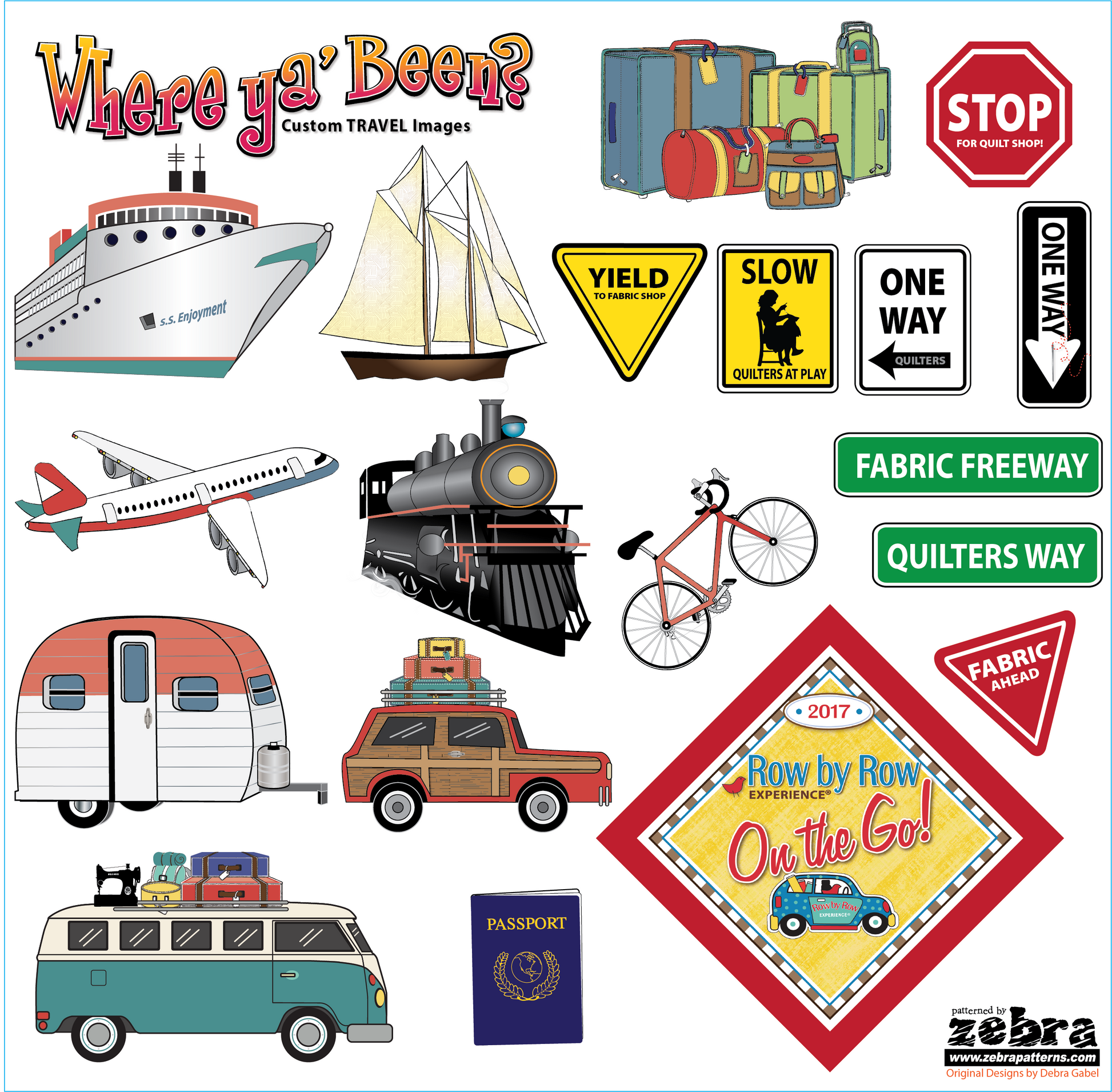 Themed patterns, printed fabric stickers, banners, full project background panels and printable sticker CDs for your Where Ya' Been projects! Think Scrapbooking for Quilters™ and decorate your Where Ya' Been projects with fun and fanciful fabric stickers and banners!