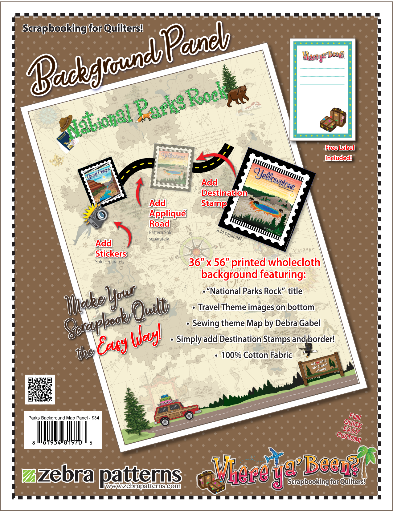 - Simply add destination Mini Stamps, personal photos, fabric stickers, border, backing, binding, quilt and embellish!