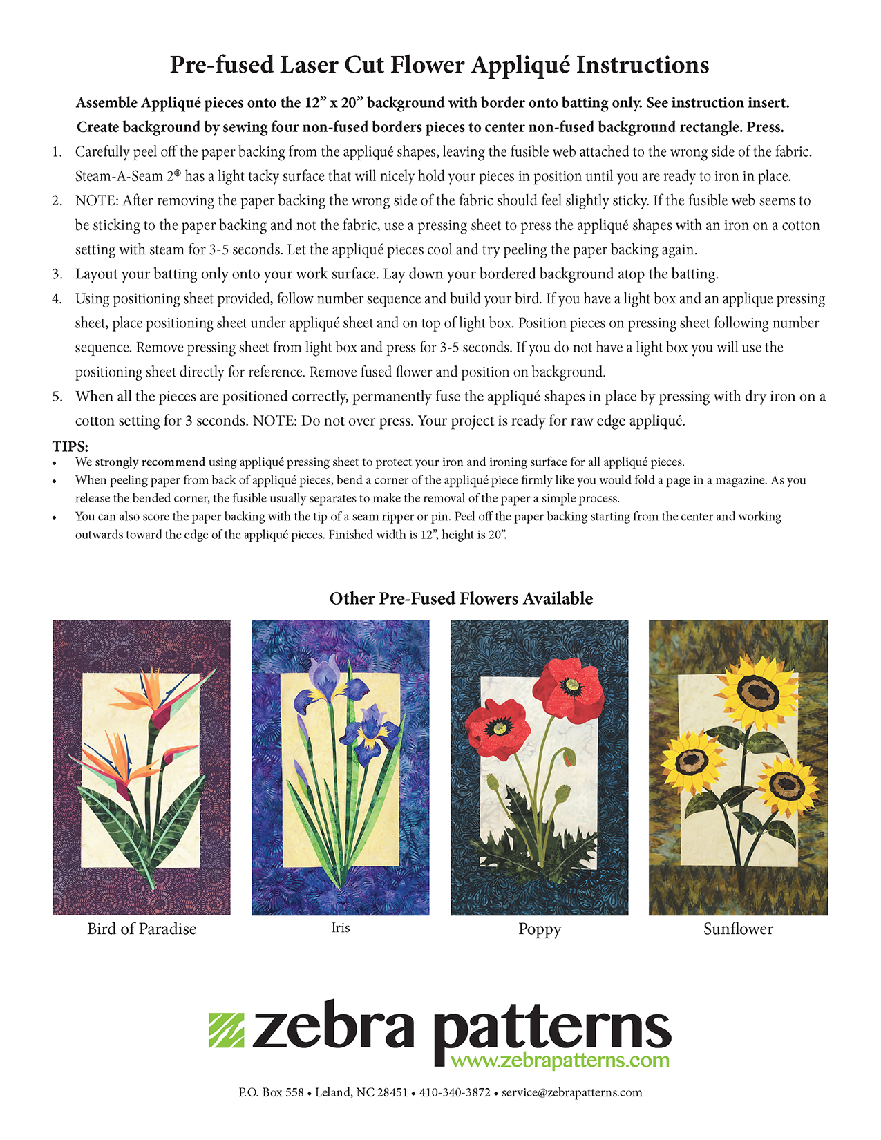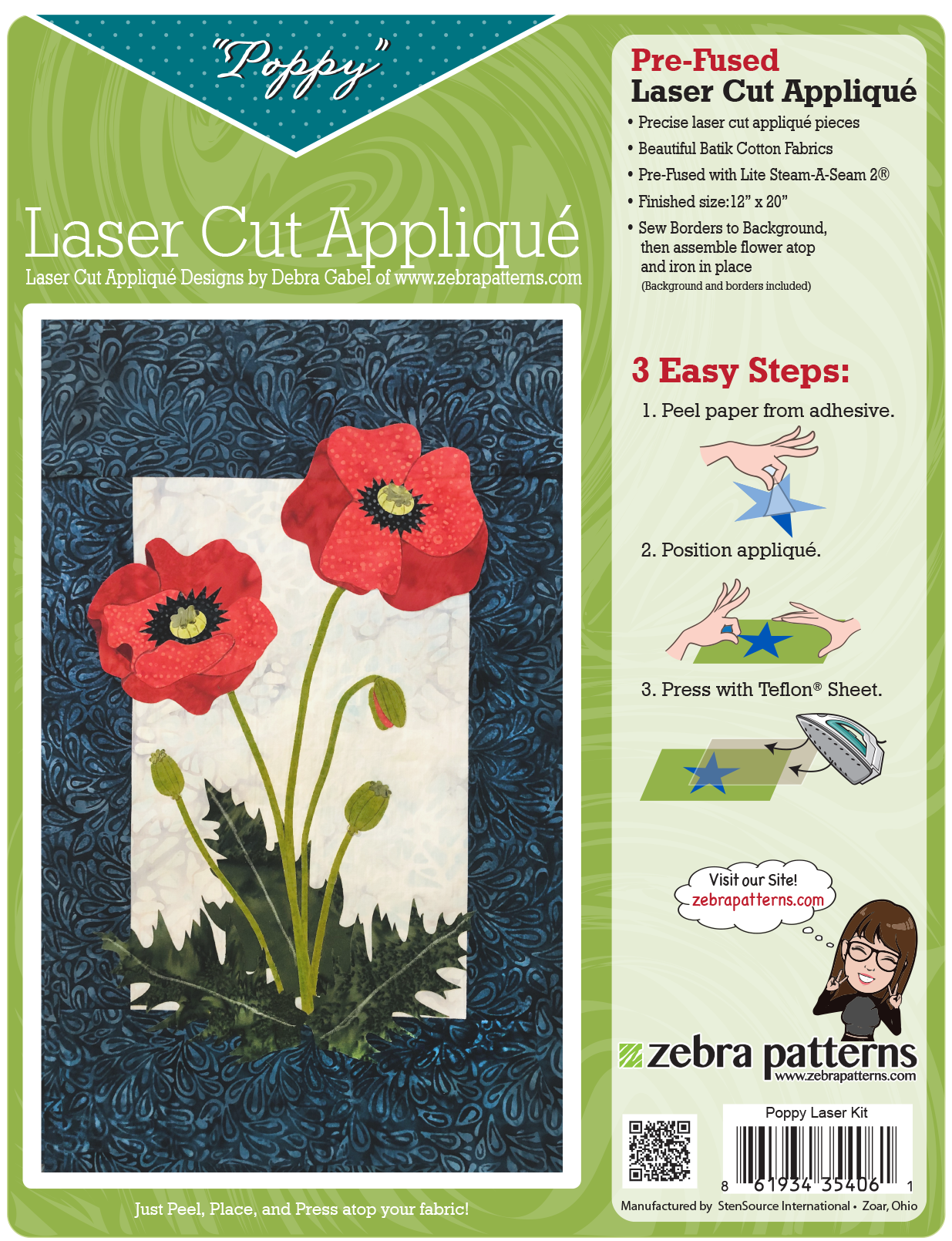 Also available in Applique Patterns without pre-fused laser cut kit for $9.00.