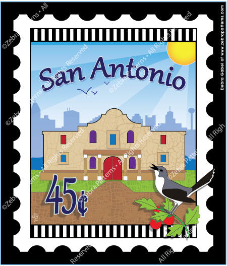 Stamps are one of Zebra Patterns' signature products. Hundreds of destinations and themes - growing monthly - illustrating life's journeys - Where Ya' Been - for you, family and friends! 100% cotton. 6" x 7" Mini Stamps and 18" x 21" Stamp Panels. View/buy from here, or from the grouped sub-categories menu at left.