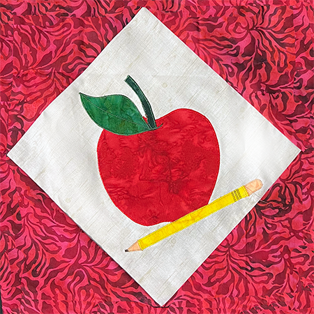 See image for the block put together with cotton fabrics. I chose a light background with matching corners to my design. My background will be the same for all twelve blocks. Your download will include a full size pattern, a positioning sheet and directions to create the background square in square block to place the featured image.