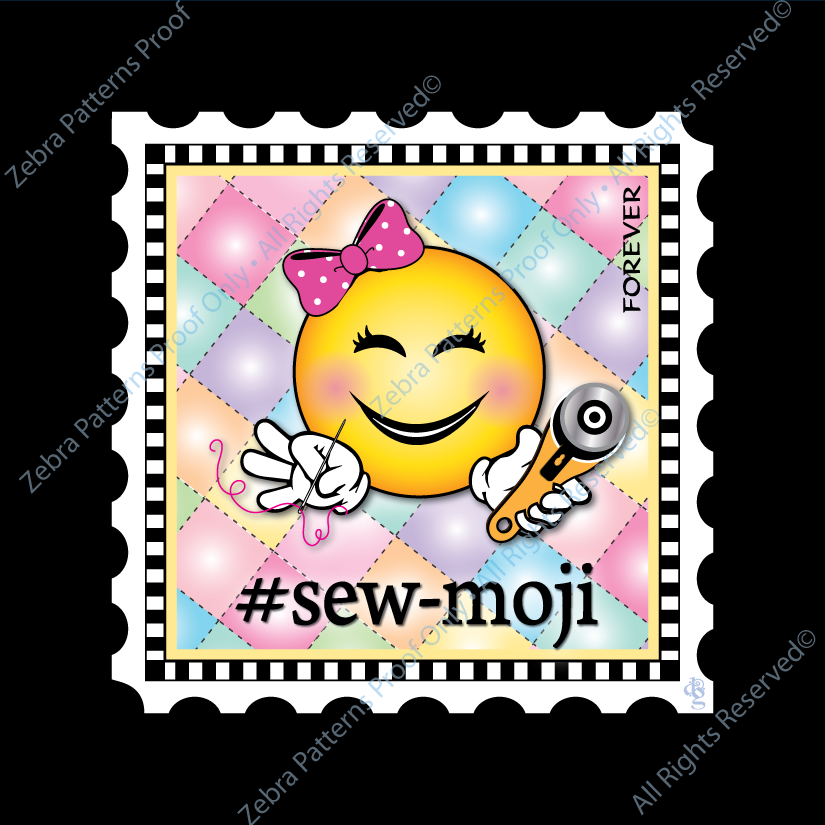 Whimsical and delightful 5 1/2" - unfinished - 100% cotton printed fabric square. Versatile element for any charm square based projects. Also see Free Stuff menu item on Store Home page for CharmStamp™ Handwork Take-Along free pattern PDF download.