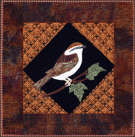 - Sew Corners to Background then assemble bird atop and iron in place.