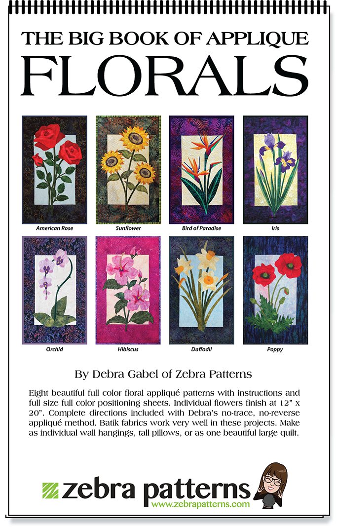 - Complete appliqué instructions with Debra’s signature NO REVERSING, NO TRACING raw edge method