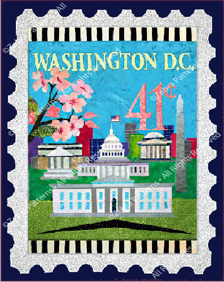 One title in limited series of Zebra's signature faux postage stamp imagery as paper patterns finishing at approximately 24" x 30". Package includes pattern pieces, positioning sheet, color photo and excellent complete directions.