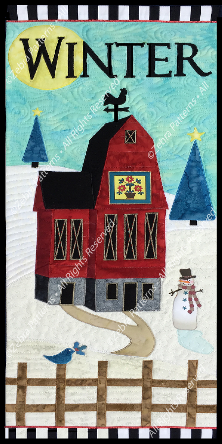 This series is designed to create beautiful seasonal hangings for yourself or as gifts. The four Skinny Barn patterns each finish to 12” x 30”. Each pattern includes complete and clear instructions with diagrams and a full sized positioning sheet for assembly. The pattern pieces are computer drawn and professionally printed for ease of use. No tracing or reversing. Every pattern includes a printed panel of the barn quilt detail to make the quilt appear very intricate. Each pattern package features a full color image of the completed quilt.